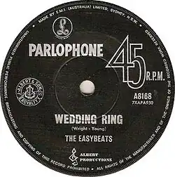 "Wedding Ring" is a song written by Stevie Wright and George Young. It was originally recorded by the Australian rock group the Easybeats in 1965, whose version reached #7 on the Australian charts.[1]