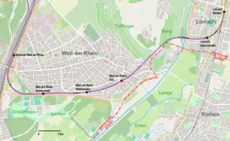 ![]() Map of the Weil am Rhein-Lörrach railway | ||||||||||||||||||||||||||||||||||||||||||||||||||||||||||||||||||||||||||||||||||||||||||||||||||||||||
