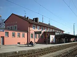 Weilheim (Oberbay) station is the station of the Bavarian district town of Weilheim in Oberbayern. It is a crossing station on the Munich–Garmisch-Partenkirchen railway, the Ammersee Railway from Mering and the Weilheim–Peißenberg railway. It is classified by Deutsche Bahn as a category 4 station[2] and has five platform tracks. It is served by about 100 trains daily operated by Deutsche Bahn and Bayerische Regiobahn (BRB).