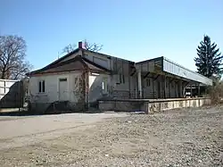 During the Second World War, the Allies dropped about 250 bombs on the station during an air raid on Weilheim on 19 April 1945. The bombs destroyed the northern part of the station building, parts of the railway tracks and the overhead lines and 20 carriages. A hospital train with wounded Hungarian soldiers was destroyed by fire.[7] There were 24 deaths, including five Hungarian soldiers who were in the hospital train.[8] After the war, Deutsche Reichsbahn replaced the destroyed station building with a long two-storey building with a gable roof.