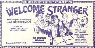 Welcome Stranger is a 1924 American silent comedy-drama film directed by James Young, starring Florence Vidor and featuring Noah Beery.[1][2]
