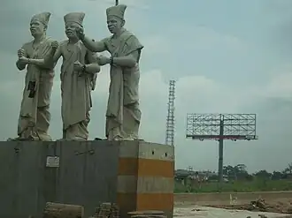 Welcome to Lagos (Yoruba: Agba Meta or Aro Meta) is an Art Deco statue of three Lagos white-cap chiefs located in Lagos, Nigeria.[1] Designed by Bodun Shodeinde in 1991 and standing over 12 ft high, the three sculpted chiefs were built to welcome people coming into Lagos State.[2]