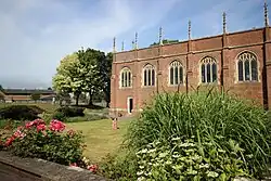 Built between 1928 and 1931 by C. H. Biddulph-Pinchard, the Grade II listed[12] red brick building is dressed with stone and has a flat roof which is concealed behind a parapet. It is a rectangular single-cell chapel with a carved stone altar. The Chapel went through specialist restoration work in 2013 which involved the repainting of the ceiling among other maintenance tasks. This restoration was funded partly by the school's Old Wellingtonians' Association