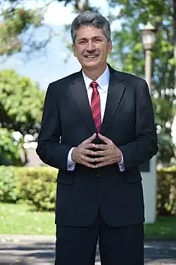 Ramos was an economist for the Central Bank of Costa Rica between 1987 and 2006 in various positions, a parliamentary adviser between 2006 and 2014 for the legislative faction of the Citizens' Action Party and a postgraduate professor at the Fidelitas, Fundepos and Costa Rica universities.[1] He was appointed minister of economy by President Luis Guillermo Solís, a position he held between May 1, 2014, and February 2, 2017, when he resigned to seek the presidential nomination from his party held at the National Citizen Convention 2017, but he lost the primary. He participated again in the National Citizen Convention 2021 and won the presidential nomination from his party on August 30, 2021.