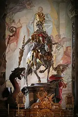 It was not until the 18th century that Weltenburg Abbey rose to prominence under abbot Maurus Bächl (1713–43). The current monastery courtyard with its Baroque buildings date to his period. The abbey church, dedicated to Saint George, was built by the Asam Brothers between 1716 and 1739.[2]: 4