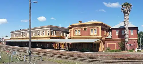 Werris Creek railway station is a heritage-listed railway station located at the junction of the Main Northern, Mungindi and Binnaway–Werris Creek lines (Keilbahnhof) in Werris Creek of New South Wales, Australia. The station serves the town of Werris Creek and was built between 1877 and 1880. The station is also known as Werris Creek Railway Station, yard group and movable relics. The property was added to the New South Wales State Heritage Register on 2 April 1999.[1]