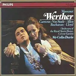 Werther is a 130-minute studio album of Jules Massenet's opera, performed by a cast led by José Carreras, Frederica von Stade, Sir Thomas Allen, Isobel Buchanan and Robert Lloyd with the orchestra of the Royal Opera House, Covent Garden under the direction of Sir Colin Davis. It was released in 1981.