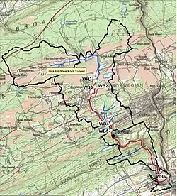 ![]() Topographic map of the West Branch Schuylkill River watershed in Schuylkill County, Pennsylvania with the black line denoting the watershed boundary | |