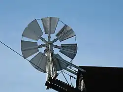 West Kingsdown Windmill was built in the early nineteenth century at Chimham's Farm, Farningham. It was marked on the 1819–20 Ordnance Survey map,[3] Greenwoods map of 1821 and the Farningham Tithe Map of 1840. In 1880, it was moved to West Kingsdown, joining a post mill that was already there. The post mill burnt down in May 1909. The mill was working by wind until 1928. One of the sails was damaged on 25 December 1929 and the fantail blew off in November 1930.[2] The mill was restored externally in 1960 by Thompson & Son, Millwrights of Alford, Lincolnshire[4] at a cost of £4.400.[5] In 2009, repairs to the weatherboards were made, and the mill was repainted. As of November 2010, it is awaiting the fitting of new sails.[6]