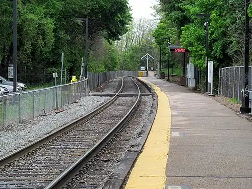 West Roxbury station is an MBTA Commuter Rail station in Boston, Massachusetts, served by the Needham Line. It is located on an embankment above Lagrange Street in the West Roxbury neighborhood. The station is accessible with a short mini-high platform on the outbound end of the main platform.