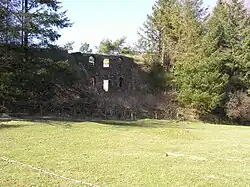 In 1907 another venture, the Somerset Mineral Syndicate, leased the railway and resumed mining, re-opening the railway on 4 July 1907 with a one-off special train and the town band.[65][66][67] The lower section of the line and the incline were brought back into use, but the Gupworthy extension from Brendon Hill remained closed. The incline reverted to gravity operation.[12] £1,500 was expended on a new jetty at Watchet, the previous one having been wrecked by storms.[68] A kiln costing £2,000 was built at Washford to process the ore into briquettes, thereby reducing volume and impurities.[69][70] and a new 2 ft (610 mm) gauge tramway was built from Brendon Hill to the Colton Iron Mine's western adit. This was at a lower altitude than Brendon Hill, so the tramway had to ascend from the mine on a new double track incline worked by a stationary steam engine using a two-cylinder winch drive with twin drums.[71][72][73] The tramway, which included a wooden viaduct,[74][75] ran nearly 2 miles (3.2 km) to Brendon Hill, where the ore was tipped into standard gauge wagons[76][77] which were lowered down the incline and hauled to Watchet.