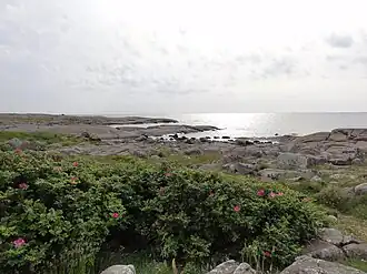 In the nature reserve, there are plant species like bladder campion, harebell, Armeria maritima, sea kale, Glaux, Seriphidium maritimum, sea sandwort, and Gentianella uliginosa. The shore meadows of Western Getterön were used for grazing until the mid-1960s. When the grazing stopped, the landscape didn't grow to, because of the thin soil. Since 1998, the area is used for grazing again. Western Getterön is also a birdwatching site, mostly for seabirds and migratory birds, even if Getterön Nature Reserve on the other side of Getterön is more well-known and situated closer to Varberg. Northern gannet, northern fulmar, auks, parasitic jaeger, and European storm-petrel are some species that have been observed at Western Getterön.