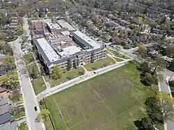 The main Collegiate Gothic building was constructed in 1927 by architect Charles Edmund Cyril Dyson[4] with the addition being constructed in 1967–1970. The school features amenities such as a pool and two gyms, a greenhouse, a large library, and a media lab.[5]