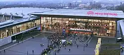 Westfalenhallen is a conference venue (Kongresszentrum Dortmund) and exhibition center (Messe Dortmund) with an indoor arena (Westfalenhalle) in Dortmund, Germany. It is surrounded by the Eissportzentrum Westfalenhallen, Stadion Rote Erde, Westfalenstadion and Helmut-Körnig-Halle.