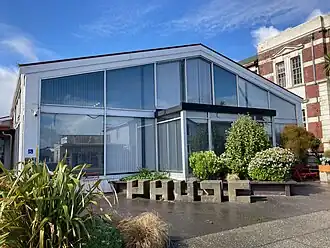 The Carnegie building had a leaking slate roof – unable to cope with the West Coast's rainfall, it was replaced with corrugated iron – and porous walls.[5] In April 1975 the library moved out into premises on Sewell Street.[3][6] After much debate, the Westland District Council resolved in September 2020 to move both the library and the Hokitika Museum exhibits into a single building at 41 Weld Street, to be called the Westland Discovery Centre / Pakiwaitara.[7][8]
