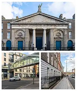 Clockwise from top: St Andrew's Church; looking north along Westland Row; the junction of Westland Row and Pearse Street