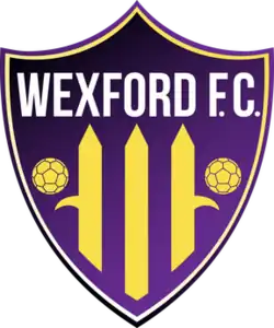 Wexford Football Club is an Irish association football club based in Crossabeg, County Wexford. They compete in the League of Ireland First Division. The club joined the league after being awarded a First Division licence for the 2007 League of Ireland season.[1] The opportunity to join the League of Ireland arose as Dublin City became bankrupt before the end of the 2006 season, leaving an uneven number of clubs.[2] The 2007 season coincided with the takeover of the running of the league by the FAI and all existing clubs had to apply for entry into what was effectively a new league.[3] Limerick was the only existing club refused a licence and so Wexford Youths and Limerick 37 were admitted to the new league.[4] The club previously wore pink and black, before switching to a purple and gold combination in 2023.[5] The club rebranded for the start of the 2017 season by dropping the 'Youths' from their title and changing the club crest.[6]