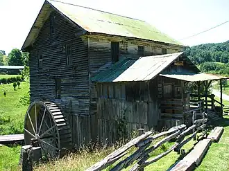 White's Mill is a historic grist mill located near Abingdon, Washington County, Virginia. It dates to the mid-19th century, and is a frame two-story structure resting on a down slope basement with a full attic sheltered by a gable roof. It has a Fitz waterwheel and great gear wheel, buhr runs, roller mills, elevators and bolting machinery. Associated with the mill are the contributing earthen race which feeds directly into the wooden race and onto the wheel and an early coursed rubble limestone dam.[3] The mill remains in working condition.