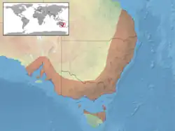 L. whitii is widespread in south-eastern Australia, including Tasmania and many Bass Strait islands.[2] Natural habitats of the species include forest, shrubland, and rocky areas, at altitudes from sea level to 1,200 m (3,900 ft).[1] The preferred habitat has rocks and shrubby heathland with minimal environmental disturbance.