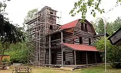 White Otter Castle is an elaborate 3-storey log house built on the shore of White Otter Lake, about 35 kilometres (22 mi) south of Ignace, Ontario, Canada, by hermit, trapper, and fisher James Alexander "Jimmy" McOuat.[2] It is an example of typical log house construction at the turn of the 19th and 20th century, but remarkable "because of the uniqueness or ingenuity of the methods by which [it] came into existence."[3]
