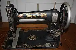 The White Sewing Machine was the first sewing machine from the White Sewing Machine Company.[1] It used a vibrating shuttle bobbin driver design. For that reason, and to differentiate it from the later White Family Rotary that used a rotary hook design instead, it came to be known as the "White Vibrating Shuttle" or "White VS". In 1879 it cost USD50 to US$125 (US$1097 to US$2744 adjusted) depending on which table or cabinet it was to be mounted in.[2] The White VS continued in production, with improvements, until the early 1900s.