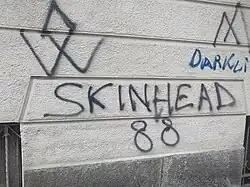 White power skinheads, also known as racist skinheads and neo-Nazi skinheads,[1][2] are members of a neo-Nazi, white supremacist and antisemitic offshoot of the skinhead subculture. Many of them are affiliated with white nationalist organizations and some of them are members of prison gangs.[3] The movement emerged in the United Kingdom between the late 1960s and the late 1970s, before spreading across Eurasia and North America in the 1980–1990s.