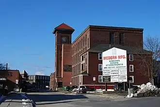 The Whittall Mills is an historic industrial complex in southern Worcester, Massachusetts. The complex, which was built between 1870 and 1930, is a reminder of the large carpet manufacturing business that was once a major presence in the city. It is a complex of 15 brick buildings located on a bend of the Middle River (a tributary of the Blackstone River), south of Crompton Street and just west of Interstate 290.[2]