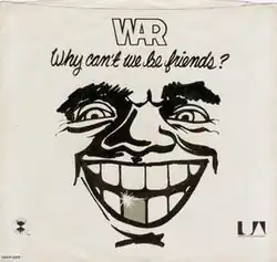 "Why Can't We Be Friends?" is a song by American funk band War, from their 1975 studio album of the same name. It has a simple structure, with the phrase "Why can't we be friends?" being sung four times after each two-line verse amounting to forty-four times in under four minutes. The song reached No. 6 on the Billboard Hot 100 in the summer of 1975, and uniquely features each band member singing their own verse. It was played in outer space when NASA beamed it to the linking of Soviet cosmonauts and U.S. astronauts for the Apollo–Soyuz Test Project.[4] Billboard ranked it as the No. 24 song of that year.