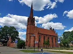 In 1871 the town became part of the German Empire. In the years 1872-1887 the cleric in charge of the local parish was Polish priest Jan Szadowski - a religious and social activist, involved in defence of the Polish language. At that time the German Empire engaged in policy of Kulturkampf which combined anti-Catholicism with anti-Polish actions in areas inhabited by Poles. Thanks to his efforts a petition was made to Prussian authorities demanding that Polish language should remain in rural schools.[12] He also initiated the construction of a local Catholic church and was engaged in popularizing Polish religious singing and wrote several collections of religious songs.[13] Szadowski complained about the teaching system imposed on the Polish population "No child can read in Polish. The new teaching system strips poverty stricken Poles of their books for prayer and their beautiful songs".[14] He also complained about expulsions of Poles by German authorities.[15] During this time around 60 Poles were expelled by German authorities from the area of the town.[16]