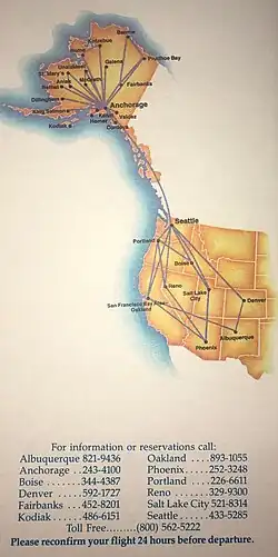 - ^ "Wien Air Alaska system timetable & route map". www.departedflights.com. 1984-09-01.