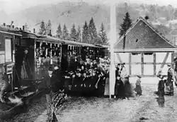 The line was opened on December 1, 1911.[1] The first train headed for Bundenthal with a class T 4.I steam locomotive and was decorated with blue and white flags.[13] The opening day was very popular with the public at all stations. The line was initially operated by the Royal Bavarian State Railways, which had owned the entire Palatinate rail network for almost three years.[14]