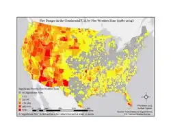 - ^ An, Hyunjin; Gan, Jianbang; Cho, Sung Ju (September 2015). "Assessing Climate Change Impacts on Wildfire Risk in the United States". Forests. 6 (9): 3197–3211. doi:10.3390/f6093197. hdl:1969.1/183802. ISSN 1999-4907.