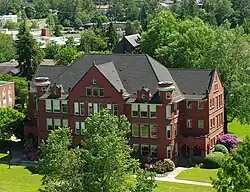 The original building of the institute was a three-story frame structure first occupied in 1844. At the time, it was one of the largest structures in the Pacific Northwest. It housed the first session of the state legislature to meet in Salem after the capital was moved there in 1851. The building burned down in 1872.[7] In 1867, a new brick building was finished to house the school and named University Hall.[6] The building was renamed as Waller Hall in 1912 to honor the Reverend Alvin F. Waller, and is now the oldest university building west of the Mississippi River still in use.[6] The first president was Francis S. Hoyt, who served in that position from 1853 until 1860 and was replaced by Thomas Milton Gatch who is the only president of the school to serve as president two different times.[8]