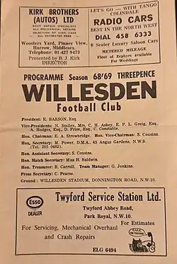 - ^ "Dark Clouds Gather over Willesden FC". Harrow Observer. 27 January 1978.