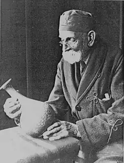 Their most interesting and sought-after wares use designs by Christopher Dresser. These firstly resulted from the purchase of some of the Linthorpe Art Pottery's moulds for Dresser designs, after this went out of business in 1889–91.[3] Ault's company continued to use some Dresser moulds until the 1920s. Other moulds were bought by Tooth and the Torquay Terracotta Company. Dresser also worked directly for Ault as a freelance designer, from 1892 to at least 1896. Their other wares were often larger pieces such as jardinières.[4] William Ault's daughter Clarissa Ault, who initialed her pieces "CJA", was the leading painter; her sister Gertrude was also a decorator.[5]