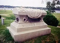 Cushing's grave is marked by a large, monumental casket made of marble, on which in relief, are Cushing's hat, sword, and coat. On one side of the stone the word "Albemarle" is cut and on the other side, "Fort Fisher".[17]