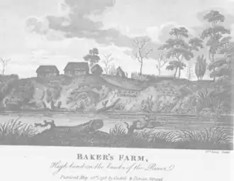 Land grant records in 1801 indicate that Baker had twelve acres of maize and wheat under cultivation with another twelve acres lying fallow, and that he owned one horse, four goats and 22 hogs. His two unpaid servants were recorded as still being present on the farm.[27]