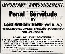 - Nevill, Lord William Beauchamp (28 January 1903). Penal Servitude. London: William Heinemann.[nb 7]