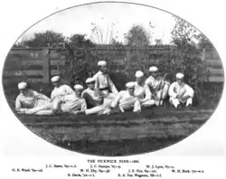 He was a member of the Princeton University's Nassau Baseball Club first nine (starting lineup) in the 1866–67 season as a shortstop.[3] The team was also known as the Pickwick Nine, playing under that name because the faculty refused to allow them to leave campus for some games.[4] In 1867–68 he played at third base,[5] left field,[6] and second base.[7] The team became known as the Princeton University Baseball Club in 1868–69. That year he remained listed as third baseman for the first nine, again occasionally playing at second.[8] In 1869–70 he was made captain and played center field, but also played shortstop, second base,[9] and even catcher.[10] Buck graduated in 1870, and in 1871 moved back to his home of Baltimore. He continued to be involved in amateur baseball. In May, 1871 he was the umpire of a game between Harvard and Brown.[11]