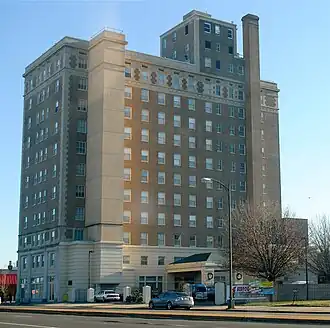 William Byrd Hotel is a historic hotel building located in Richmond, Virginia. It was built in 1925, and is an 11-story, Classical Revival-style building consisting of a base, shaft and capital. It is a steel frame building clad in limestone, buff brick, and with terra cotta decorative elements. The building is topped by a three-story penthouse with a one-story addition. The hotel ceased operation in the 1980s, and the building was renovated into apartments in 1996.[3] As of 2017, the William Byrd Apartments were owned by Project: Homes, a regional nonprofit dedicated to providing housing for low-income seniors.[4]