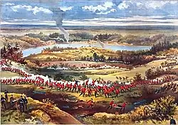 Blatchly is perhaps best known for his chromolithographic renderings of North West Rebellion battle-scene sketches such as the Capture of Batoche by F.W. Curzon, "Special Artist" of the Canadian Pictorial and Illustrated War News, which were published by Grip P. & P. Co. and the Toronto Lithography Company in 1885.[8]