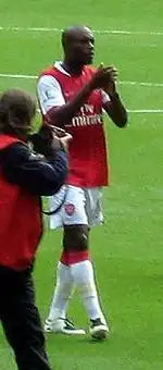 In August 2008, it was announced that Gallas would remain the club's captain for the 2008–09 season.[30] In the 2008–09 season, Gallas proved prolific in the Champions League. He scored six goals in Arsenal's campaign, including two against Dutch side Twente and an equaliser against Dynamo Kyiv, as well as a header against Spurs. On 29 October 2008, he scored his first league goal of the season against Tottenham at the Emirates, scoring Arsenal's second goal in a 4–4 draw. On 8 November 2008, in a 2–1 victory over Manchester United, he received praise for his display whilst playing alongside former United defender Mikaël Silvestre. It was claimed he outshone United defenders Rio Ferdinand and Nemanja Vidić.[31]