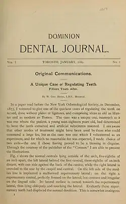 Beers was a successful and notable dentist. After finishing his schooling in 1856, Beers completed a dental apprenticeship. By the early 1860s, Beers was a successful dentist and began publishing articles in journals.[1] In 1868, he founded Canada's first dental journal, the Canada Journal of Dental Science.[2] Although this publication failed, he went on to start the Dominion Dental Journal in 1889, which eventually became the modern day Journal of the Canadian Dental Association. He was instrumental in the founding of Quebec's first dental college – the Dental College of the Province of Quebec, founded in 1892 and served as its founding dean.[3] In 1896, this College became affiliated with Bishop's University and later became the McGill University Faculty of Dentistry. He held the position of Dean at Bishop's for only a short time; differences in opinion regarding curriculum and concerns over the use of untrained dental assistants led Beers to resign from the position.[4]