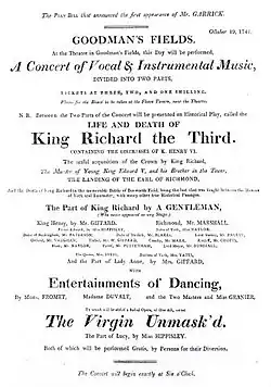 - ^ "King Lear (1742, Goodman's Fields) :: Shakespeare in Performance :: Internet Shakespeare Editions".