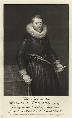 William Trumbull (1575?–1635) was an English diplomat, administrator and politician. From 1605 to 1625 Trumbull was secretary and later envoy from James I and then Charles I at the Brussels Court of Archduke Albert of Austria, ruler of the Habsburg Netherlands.[1]