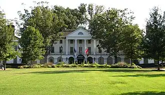 Williamsburg Inn is a historic resort hotel located at Williamsburg, Virginia. It was built in three phases between 1937 and 1972. The original section was designed by Perry Dean Rogers Architects and is dominated by a two-story portico which stands atop a ground floor arcade. It is a three-story, seven-bay, Colonial Revival style brick structure. It has two-story flanking wings in an "H"-shape. The East Wing addition, also by Perry Dean Rogers Architects, consists of multiple wings of guest rooms set at right angles to one another. A third phase embracing the Regency Dining Room and its adjoining courtyard, was completed in 1972. The inn represented John D. Rockefeller Jr.'s commitment to bring the message of Williamsburg to a larger audience of influential Americans.[3]