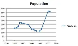 In 1901 the population was 141, and the parish covered 940 acres.[11]: 521
