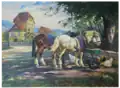 Work Horses Resting in Shade, oil on canvas (private collection)
