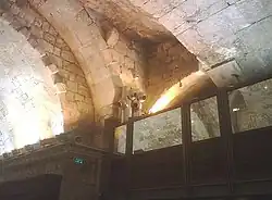 On July 25, 2010, a Ner Tamid, an oil-burning "eternal light," was installed within the prayer hall within Wilson's Arch, the first eternal light installed in the area of the Western Wall.[27] According to the Western Wall Heritage Foundation, requests have been made for many years that "an olive oil lamp be placed in the prayer hall of the Western Wall Plaza, as is the custom in Jewish synagogues, to represent the menorah of the Temple in Jerusalem as well as the continuously burning fire on the altar of burnt offerings in front of the Temple, especially in the closest place to where they used to stand."[27]