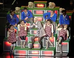 "Wind It Up" met similar success in Europe, reaching number five on the European Hot 100 Singles.[23] The single debuted at number eight on the UK Singles Chart, selling 10,381 downloads in its first week.[24] The following week, it rose to number three (behind Take That's "Patience" and Cliff Richard's "21st Century Christmas") with 17,706 copies sold,[25] earning Stefani her second highest-peaking single in the United Kingdom after "The Sweet Escape".[26] It had less success across the continent, reaching the top 10 in Belgium, the Czech Republic, Finland, Ireland, Italy, the Netherlands, and Norway, the top 20 in Austria, France, Sweden, and Switzerland, and the top 30 in Germany and Greece.[27][28]